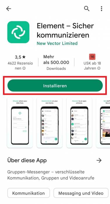 Vom Downloadbereich wird man zum Google Play Store weitergeleitet. Dort muss die App installiert werden.