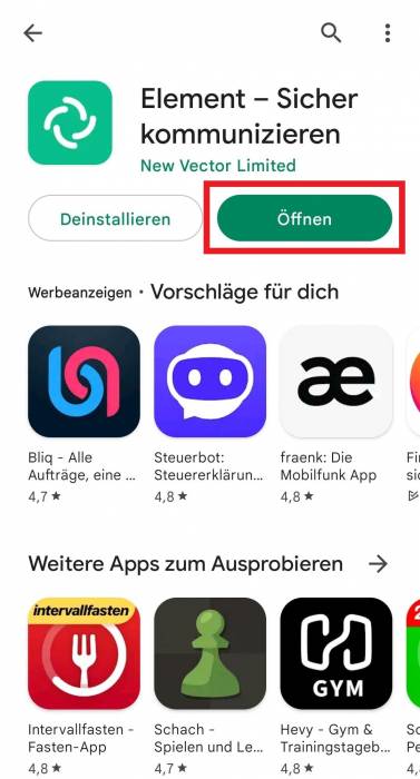 Nach der Installation muss die App geöffnet werden.