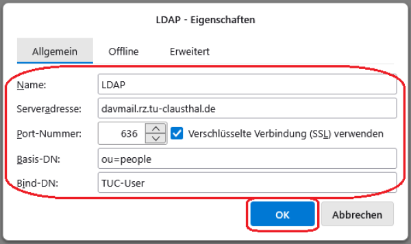 Thunderbird LDAP-Adressbuch