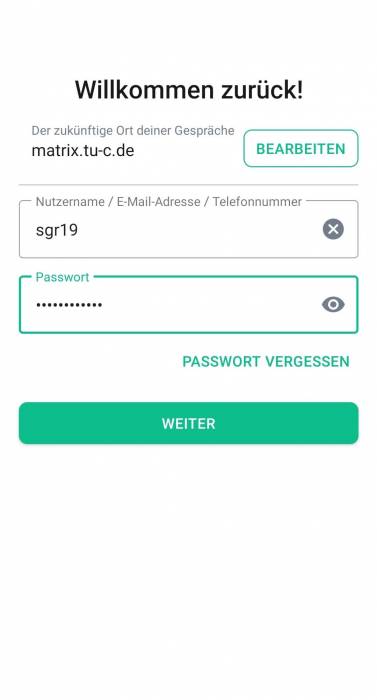 Nachdem der Homeserver der TU Clausthal eingestellt wurde, können Sie sich mit Ihrer RZ-Kennung einloggen.