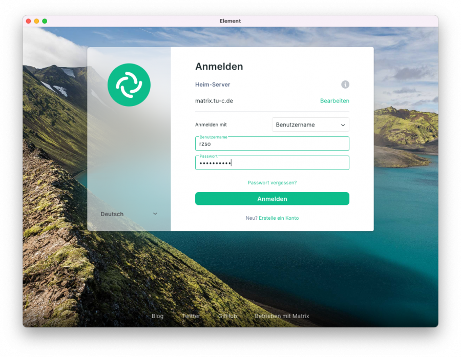 Nachdem der Homeserver der TU Clausthal eingestellt wurde, können Sie sich mit Ihrer RZ-Kennung einloggen.