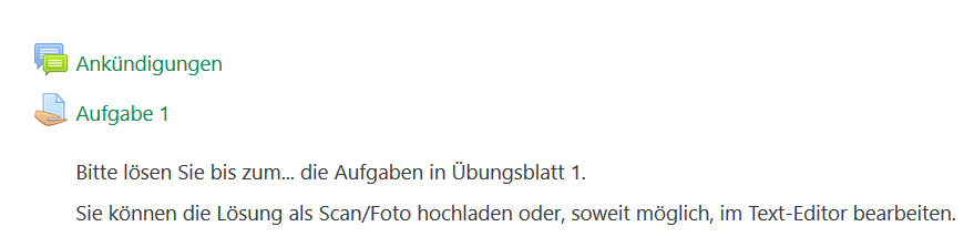 (Datei hinzufügen) ein Übungsblatt hochladen, dann wird es später wie folgt angezeigt: