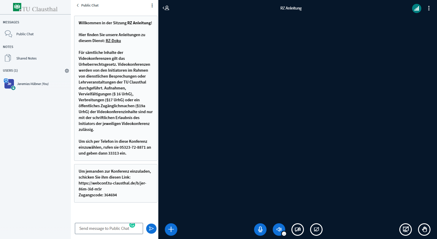 You can participate in a conference by either visiting a direct link sent by an organiser or by following a redirection link from an online event in Moodle or Stud.IP.
