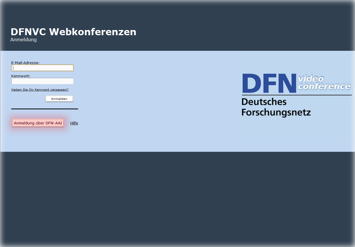 Den Webkonferenz-Dienst erreichen Sie unter folgender Adresse Anmeldung webconf