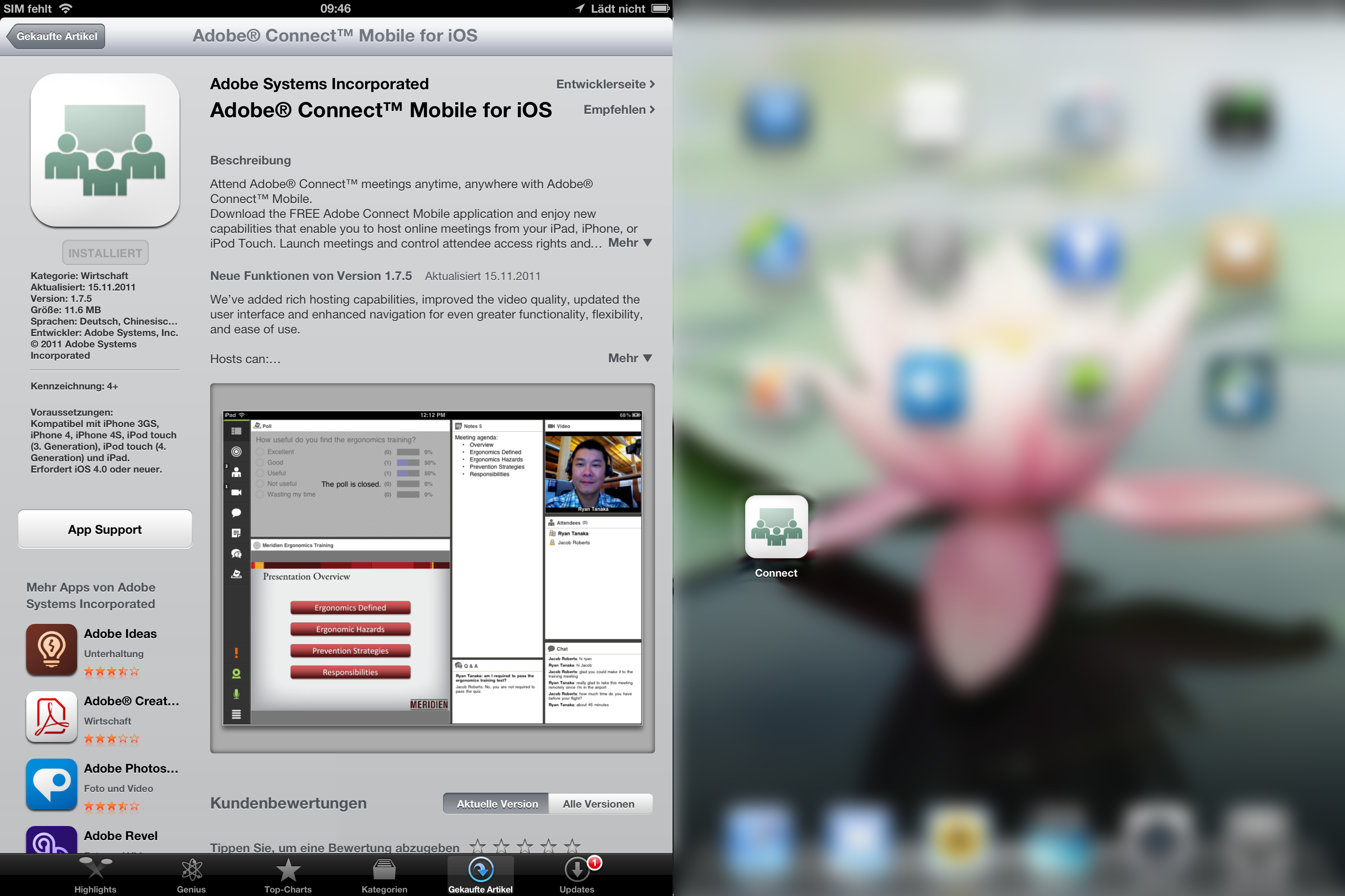 Voraussetzung für die Teilnahme ist lediglich ein Webbrowser mit einem aktuellen FlashPlayer. Der FlashPlayer führt mittlerweile aber zu Sicherheitswarnungen des Webbrowsers. Daher empfiehlt Adobe die Installation der eigenständigen Adobe Connect App. Sie ist für Windows, MacOS sowie für iOS und Android erhältlich.