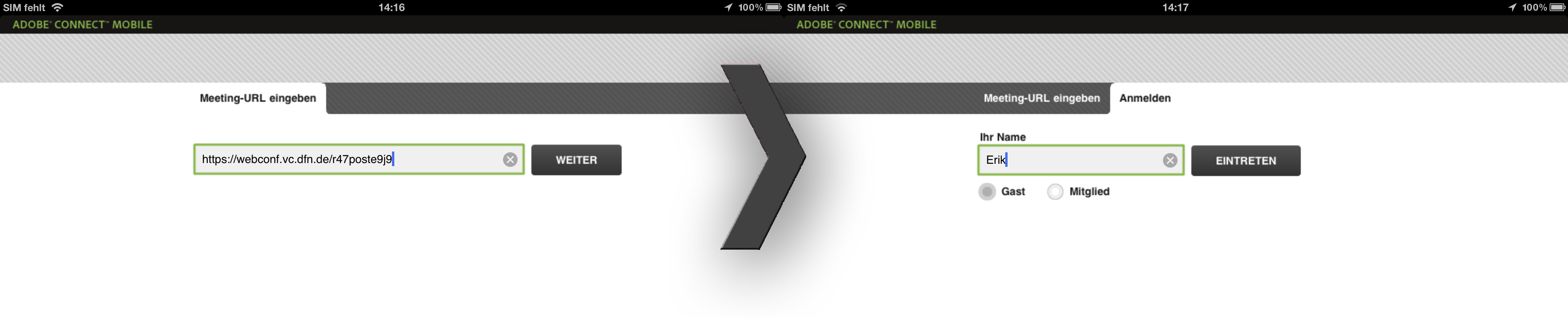 Um einer Konferenz beizutreten, müssen Sie lediglich die vom Veranstalter verschickte Konferenz-URL aufrufen und sich anmelden.