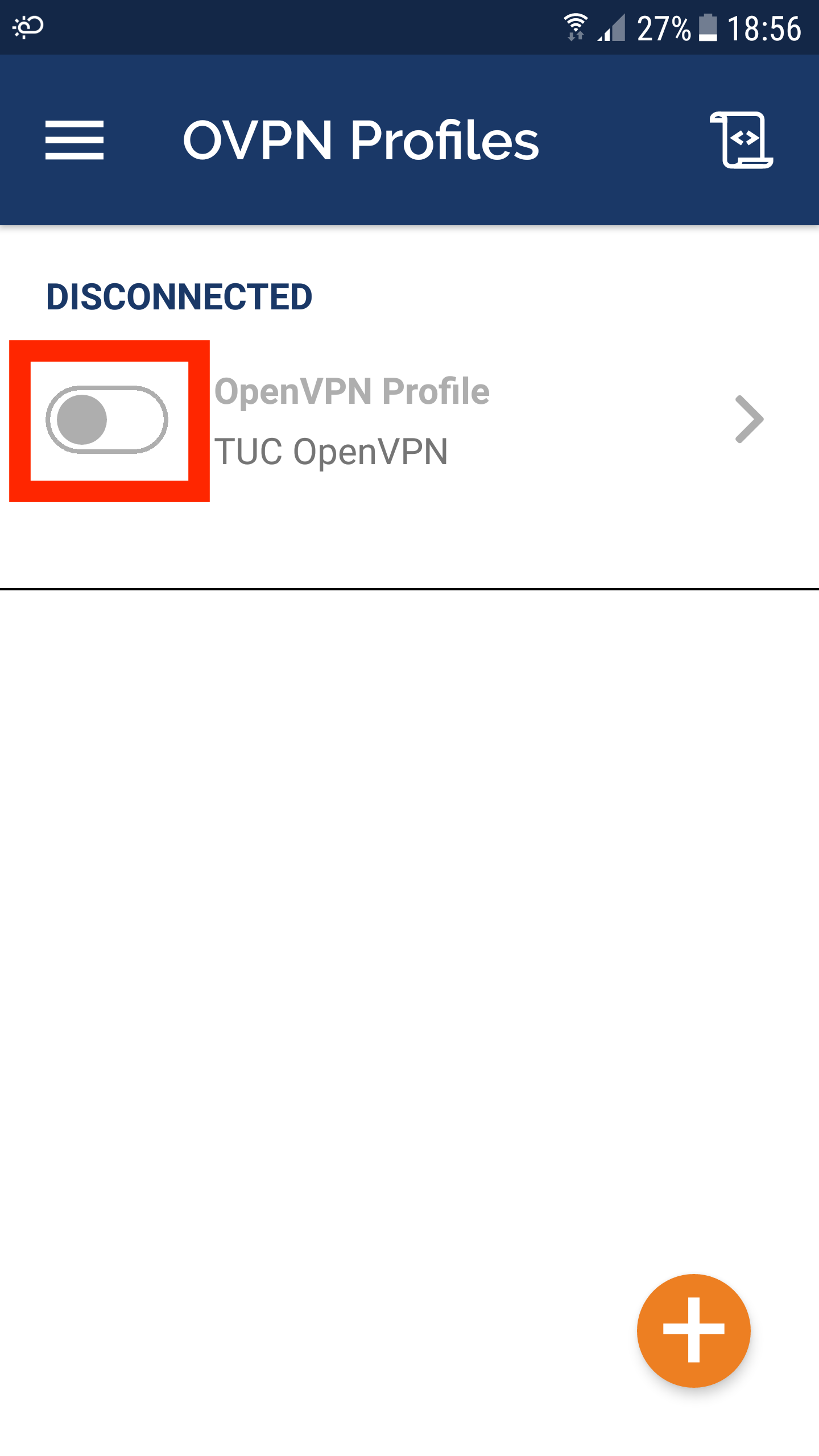 - Unter OVPN Profiles wird jetzt TUC OpenVPN angezeigt. Um sich mit dem VPN zu verbinden, betätigen Sie den Button.
