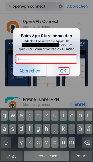 - Sie können den App Store nach Abschluss der Installation der App OpenVPN Connect schließen. Setzen Sie die Konfiguration des VPN-Clients dann unter 3 Einrichtung des Clients fort.