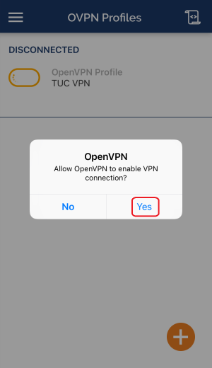 - Bestätigen Sie die Fragen, ob eine VPN-Verbindung hergestellt werden darf, mit YES.