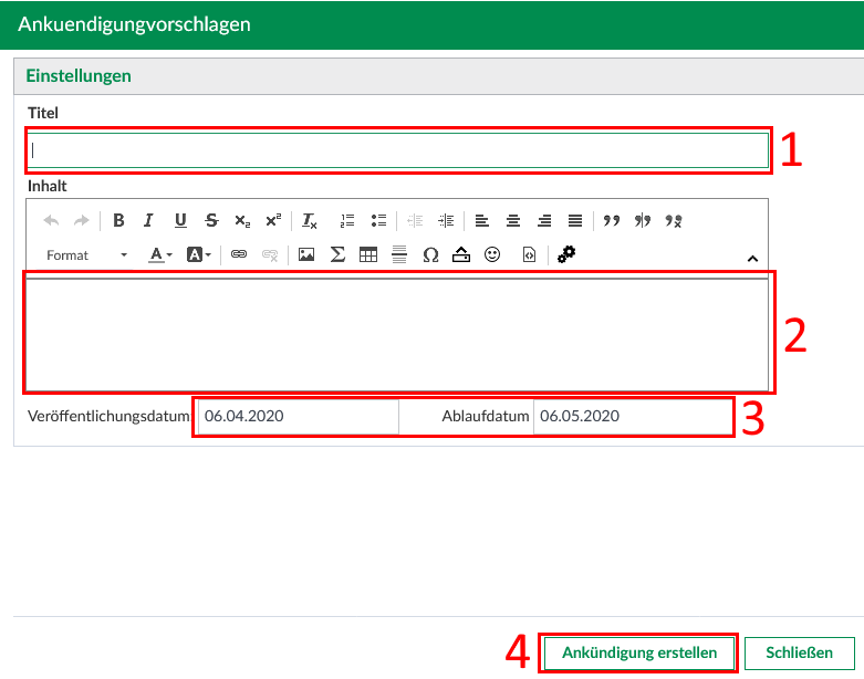 - Ankündigungen verfassen