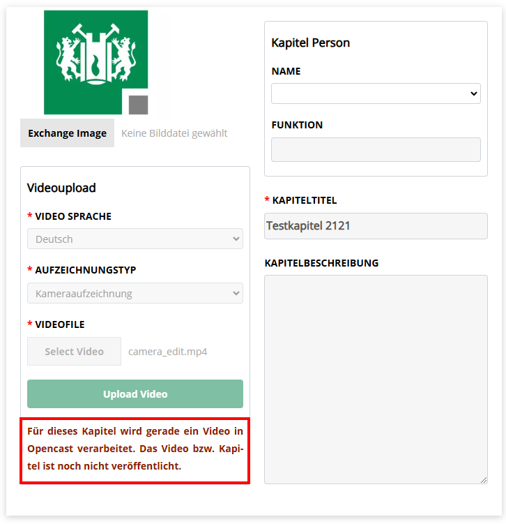 - Hochladen von Videos über das Admin Interface