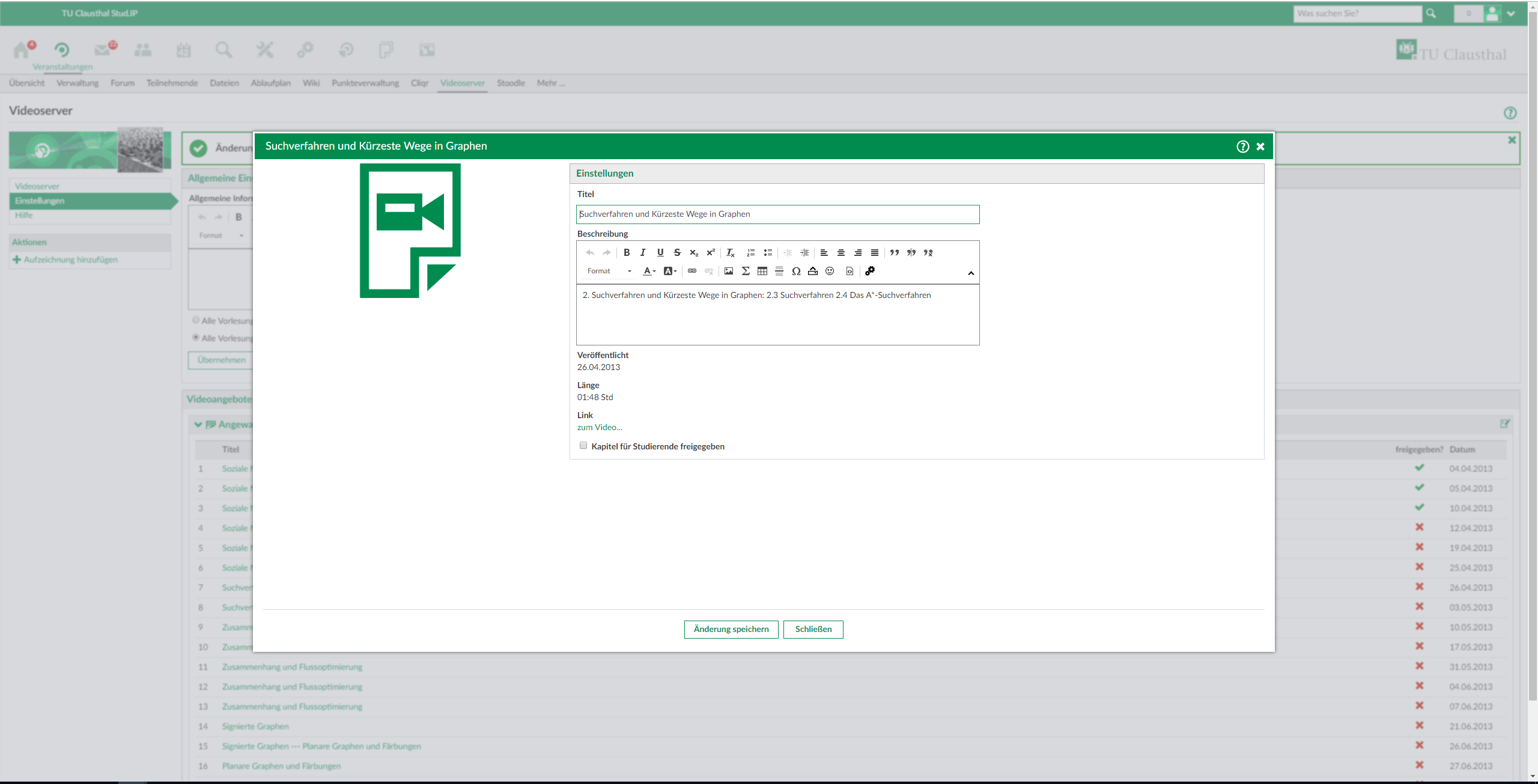 - Metadaten zu einer Aufzeichnung in Stud.IP ändern
