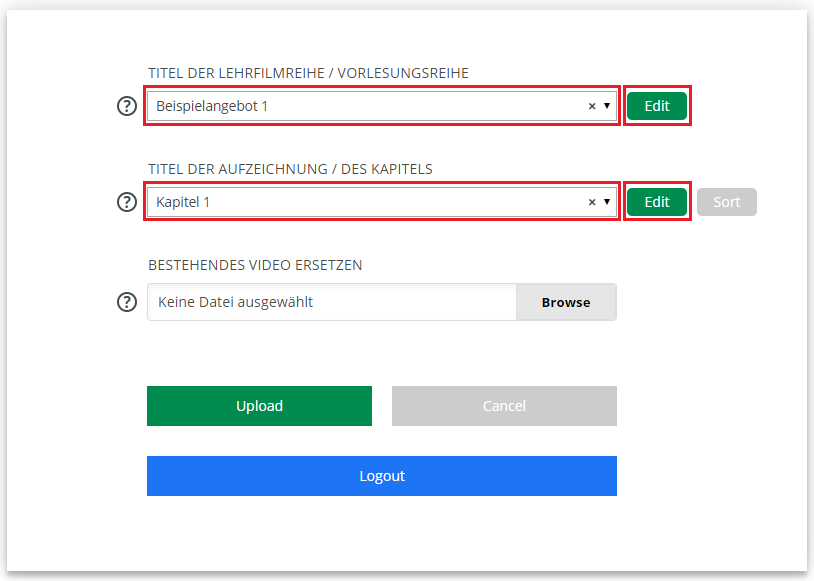 - Videouploadformular: Ändern von Metadaten